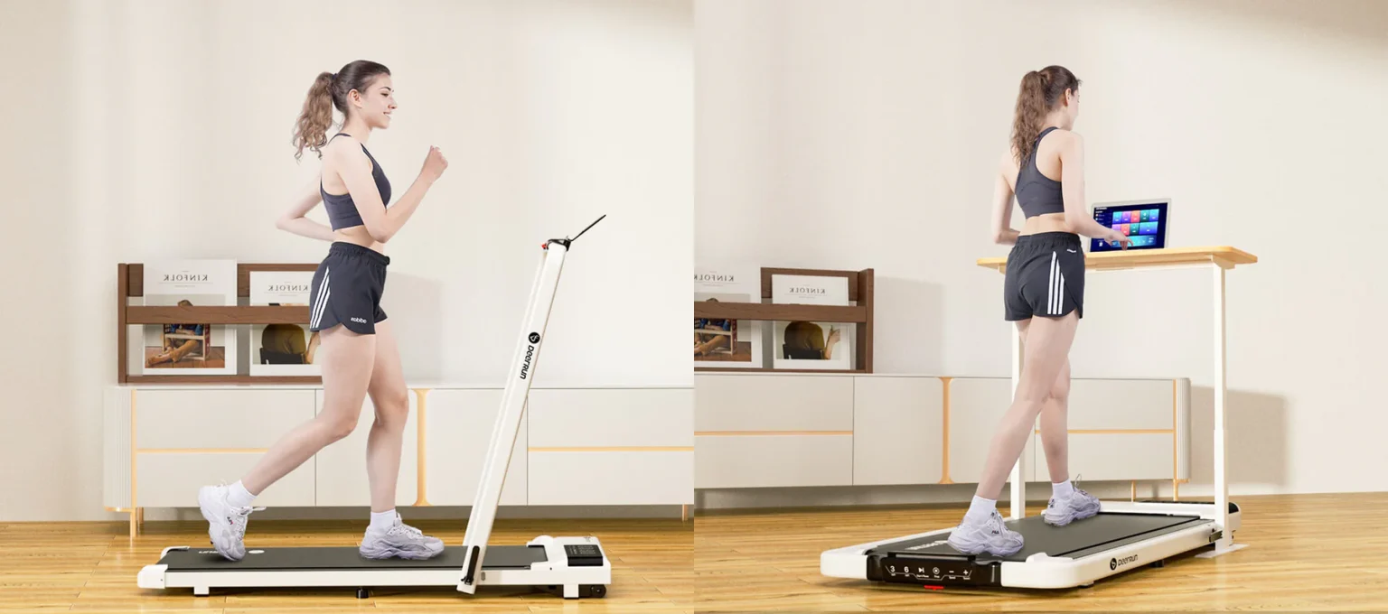 Pase de caminar a correr con un simple movimiento de muñeca, transformando su cinta de correr tradicional en una eficaz y cómoda estación de trabajo para caminar.