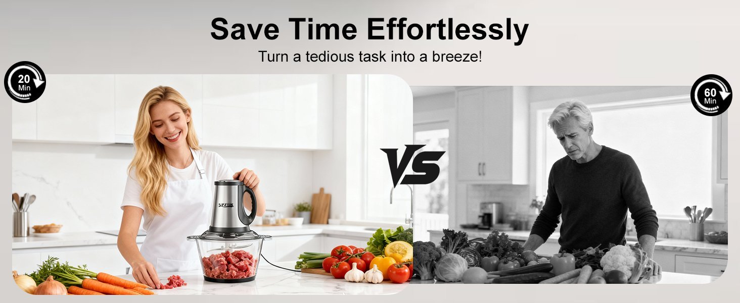Er spart so viel Zeit! Was fr¨¹her 15 Minuten handhacken gedauert hat, geht jetzt in 1 Minute ¨C mehr Zeit f¨¹r das Kochen und weniger f¨¹r die Vorbereitung.