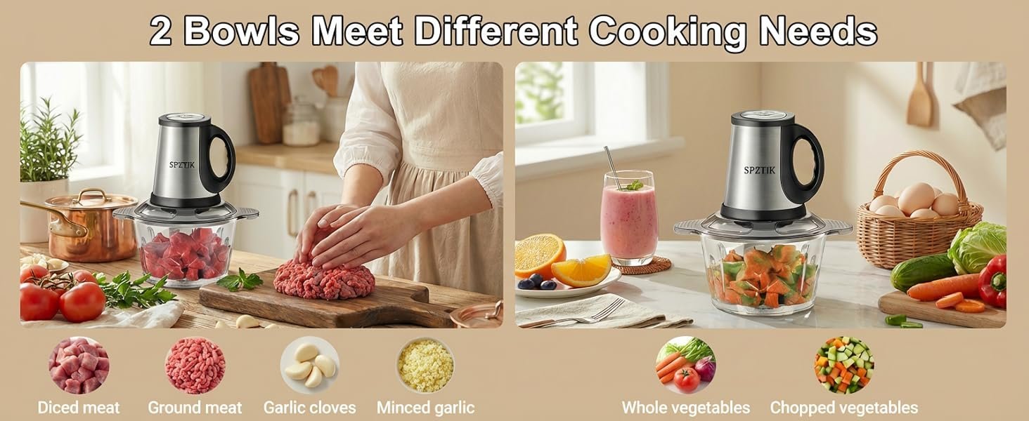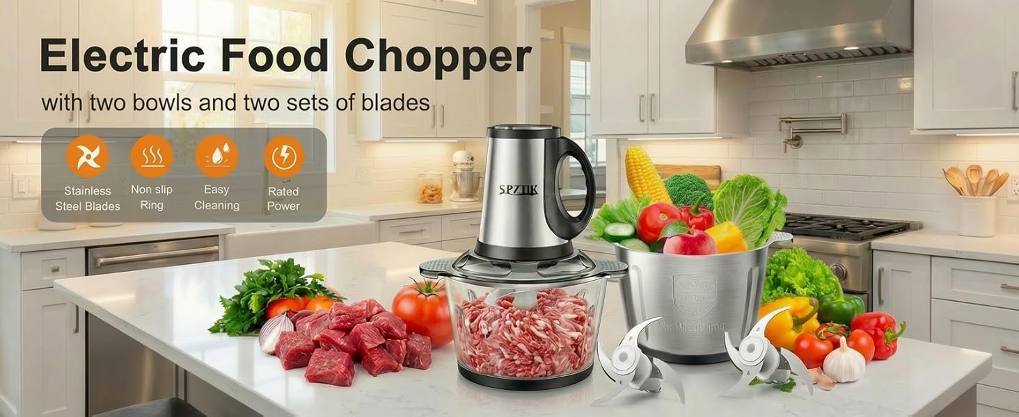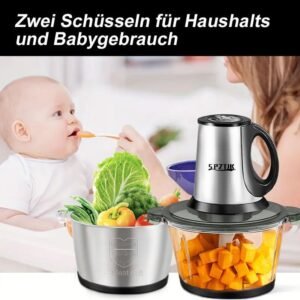 30 reviews for SPZTJK Multifunktionaler Elektrischer Schneidroboter aus, Fleischhacker für den Hausgebrauch, Zerkleinerer Elektrisch,zwei Schüsseln(Edelstahls & Glass)und klingen,zum Zerkleinern und Hacken geeignet, Ideal für Gemüse, Knoblauch, Salat, Babynahrung